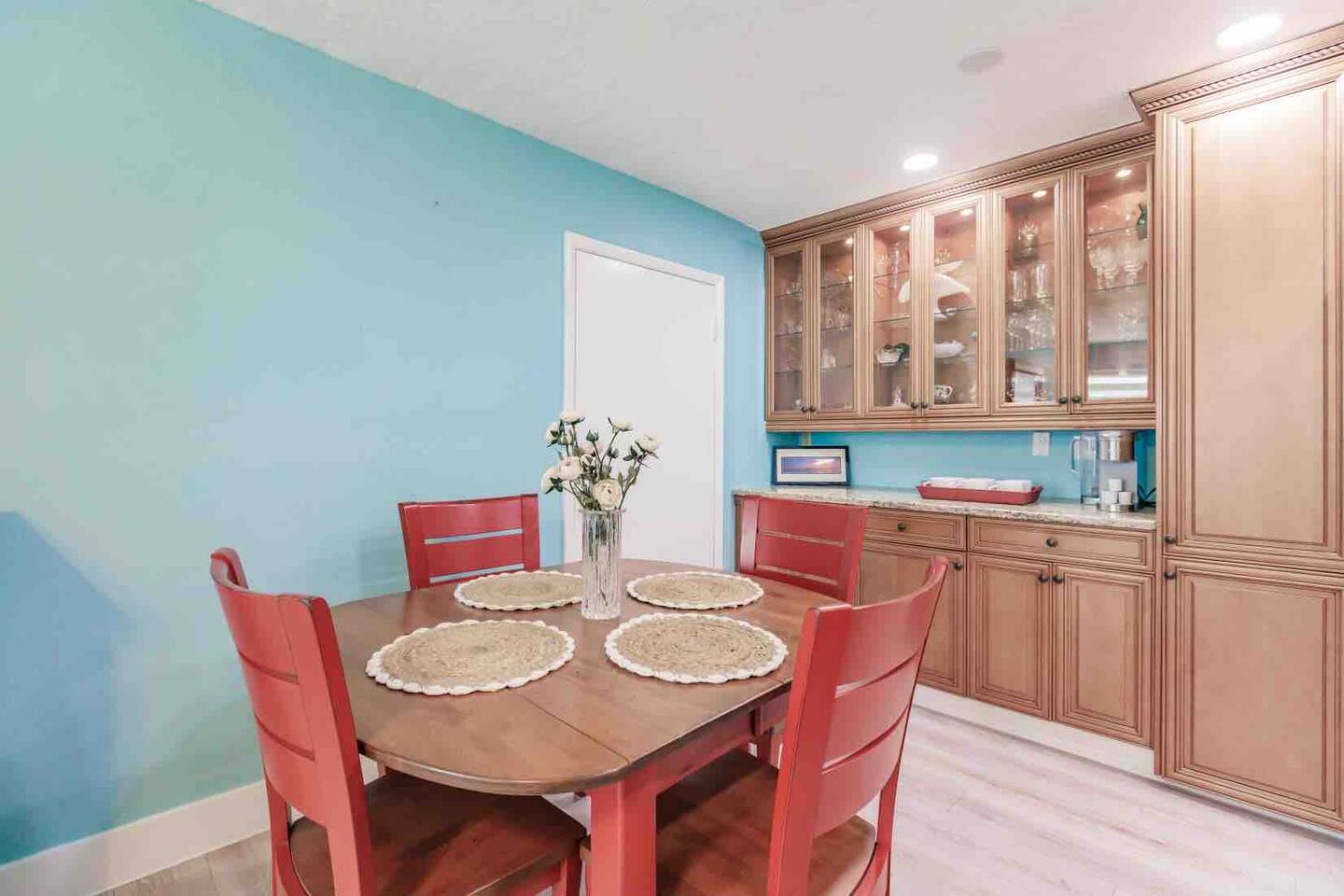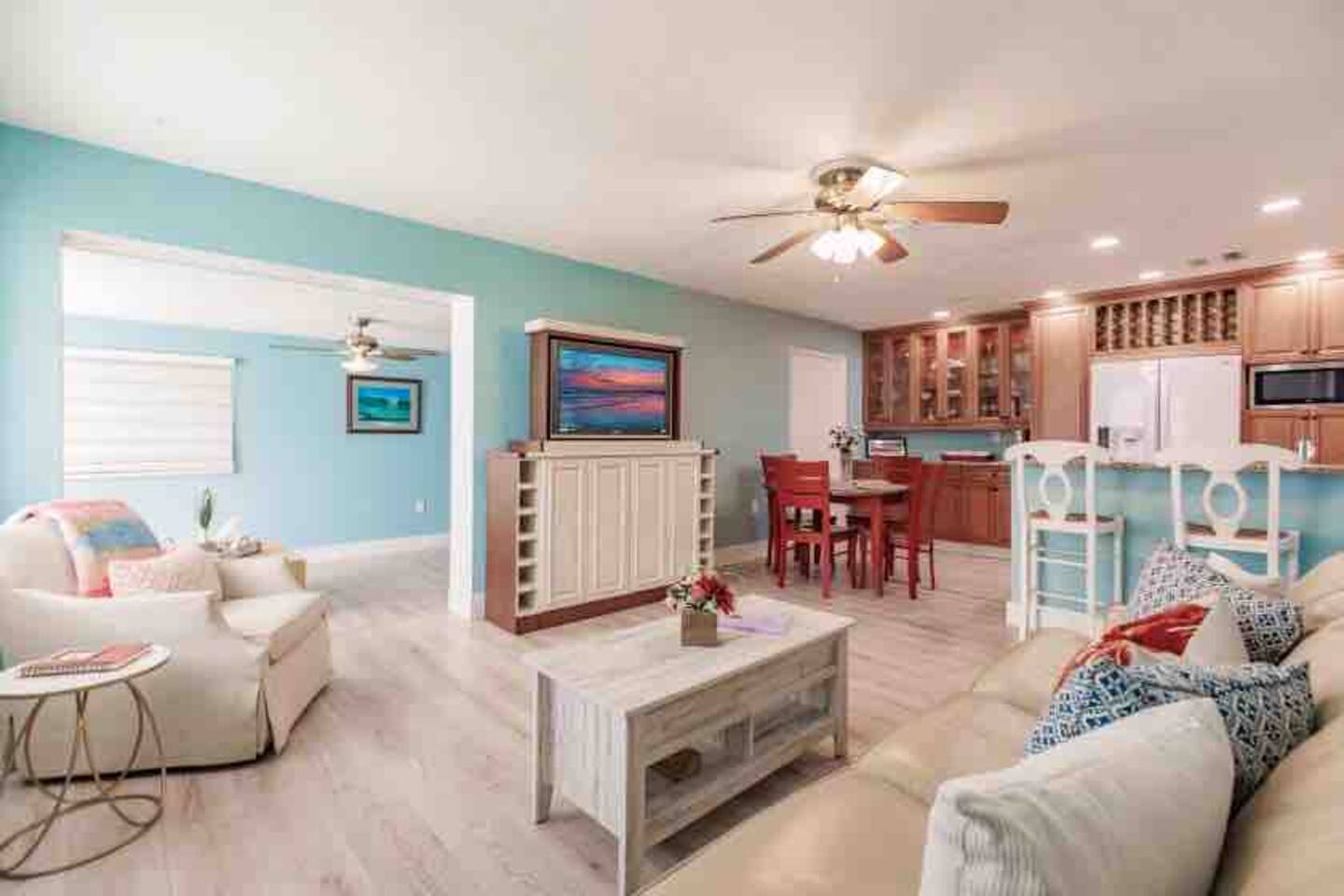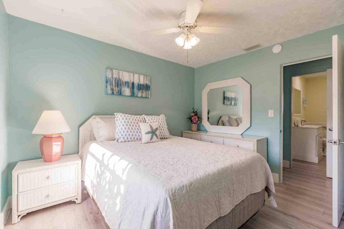 The Space ⭑SEND US A MESSAGE TO ASK ABOUT SEASONAL DISCOUNTS!⭑ 🛏️ **Bedrooms:** 1. Large master bedroom with Queen bed and en-suite bathroom. The master bedroom is spacious and elegantly furnished, offering a comfortable retreat with a luxurious queen bed and an en-suite bathroom for added privacy and convenience. The decor is thoughtfully designed to create a tranquil and inviting atmosphere, perfect for unwinding after a day of exploration or relaxation. 2. Second bedroom with queen bed. The second bedroom features a cozy queen bed, providing a cozy and restful space for additional guests. Guests will appreciate the attention to detail in the decor and furnishings, ensuring a comfortable stay. 3. Trundle bed in living room. The living room offers a versatile trundle bed, perfect for accommodating extra guests or providing flexible sleeping arrangements. This multi-functional space allows for both relaxation and additional sleeping accommodations, making it ideal for families or groups. 🚽 **Bathrooms:** 1. En-suite bathroom. The en-suite bathroom features modern fixtures and a spacious layout, providing a private and luxurious space for guests to rejuvenate. The well-appointed amenities and thoughtful design create a spa-like experience, enhancing the overall stay. 2. Second bathroom with shower. The second bathroom offers convenience and functionality with a shower and essential amenities. Guests will appreciate the well-maintained facilities and thoughtful touches that cater to their comfort. 🍳 **Kitchen & Dining:** - Fully stocked with everything you need. The kitchen is fully stocked with all the essentials, making it easy to prepare and enjoy meals during your stay. From cookware to utensils, guests will find everything they need to create delicious meals and snacks. - Newly remodeled & updated. The kitchen has been newly remodeled and updated, boasting a fresh and modern aesthetic. The contemporary design and premium finishes elevate the culinary experience, making meal preparation a delight. - All new appliances, including Wolf gas range stove. The kitchen is equipped with top-of-the-line appliances, including a Wolf gas range stove, allowing for effortless cooking and culinary creativity. Guests can indulge in gourmet cooking and savor the convenience of high-quality appliances. - Separate dining area for 4. The dining area provides a stylish and comfortable setting for enjoying meals together. The intimate space accommodates up to four guests, creating a welcoming atmosphere for shared dining experiences. 🛋️ **Living Areas:** - Two living areas with large TVs. Two separate living areas are available, each furnished with comfortable seating and large TVs for entertainment. Whether it's unwinding with a movie or hosting social gatherings, these spaces offer versatility and comfort for all guests. 🌞 **Outdoor Amenities:** - Outdoor covered patio & sitting area with TV. The outdoor covered patio features a cozy sitting area with an outdoor TV, allowing guests to relax and enjoy the beautiful surroundings while catching up on their favorite shows or sports events. - Propane grill and smoker. A propane grill and smoker are provided for outdoor cooking, adding a fun and delicious element to your stay. Guests can savor al fresco dining and barbecue experiences while taking in the fresh air and sunshine. 🏖️ **Beach Accessory:** - Beach chairs & towels provided. To enhance beach outings, the property offers convenient beach chairs and towels, making it easy for guests to pack light and enjoy a day of sun, sand, and surf without worrying about bringing their own gear.d furnishings, ensuring a comfortable stay.