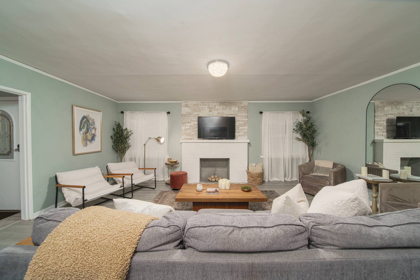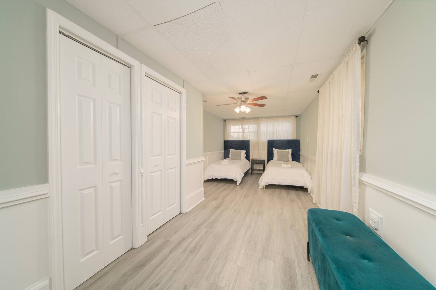 This comfy getaway will leave you in awe with its carefully picked amenity list. ★ 7 BEDROOMS★ The bedrooms features a comfortable bed designed to provide you with the perfect resting experience. Besides the hotel-like comfort, the bedroom is furnished to meet all your needs. BEDROOM 1 ✔ Queen–Size Bed with Pillows, Linens, and Sheets ✔ Wardrobe with Hangers and Shelves ✔ Nightstands w/lamps BEDROOM 2 ✔ Queen–Size Bed with Pillows, Linens, and Sheets ✔ Wardrobe/Closet with Hangers and Shelves ✔ Full Length Mirror ✔ nightstands ✔ lamps BEDROOM 3 ✔ Queen–Size Bed with Pillows, Linens, and Sheets ✔ Full length mirror ✔ Nightstands BEDROOM 4 ✔ Queen bed with Pillows, Linens, and Sheets ✔ Full Length Mirror ✔ 2 nightstands BEDROOM 5 ✔ Two Queen beds with Pillows, Linens, and Sheets ✔ nightstand BEDROOM 6 ✔ 2 Twin beds with Pillows, Linens, and Sheets ✔ Full Length Mirror ✔ Nightstand BEDROOM 7 ✔ 2 Twin beds with Pillows, Linens, and Sheets ✔ TV ✔ Nightstand ★ 4 Full BATHROOMS★ The home features 4 full bathrooms with all necessities. We do not supply shower supplies so please bring your own. Bathroom 1 ✔ Shower/Tub combination ✔ sink/vanity ✔ Mirror ✔ Toilet ✔ Towels ✔ wash cloths ✔ toilet paper ✔ hand soap Bathroom 2 ✔ Handicap Accessible Shower ✔ sink/vanity ✔ Mirror ✔ Toilet ✔ Towels ✔ wash cloths ✔ toilet paper ✔ hand soap Bathroom 3 ✔ Shower/Tub combination ✔ sink/vanity ✔ Mirror ✔ Toilet ✔ Towels ✔ wash cloths ✔ toilet paper ✔ hand soap Bathroom 4 ✔ Shower ✔ sink/vanity ✔ Mirror ✔ Toilet ✔ Towels ✔ wash cloths ✔ toilet paper ✔ hand soap ★LIVING ROOM★ Ideal for relaxing and enjoying the company of friends and family while watching a good movie or a show . ✔ Comfortable Sofa with Pillows ✔ Flat-Screen TV ✔ Coffee Table ✔ Fireplace ✔ Large Mirror ✔ 4 chairs ✔ Side Tables ★ KITCHEN & DINING ★ The kitchen area has numerous cooking appliances and spacious counter tops. If you want to take a break from the Central City restaurants, then this is the place for you. ✔ Microwave ✔ Stove ✔ Oven ✔ Refrigerator/Freezer ✔ Dishwasher ✔ Toaster ✔ Sink - Hot & Cold Water ✔ Trays ✔ Glasses ✔ Silverware ✔ Pots &Pans ✔ Keurig and drip Coffee Maker and much more Separate Dinning Room ✔ Dining Table with 8 Chairs This home also includes Great outdoor lounge areas and a Grill *This home is driveway parking only. Please do not park on the street. The Driveway will fit 4 cars. Guest over 10 ppl are an additional charge